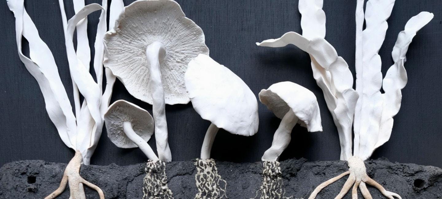 A forthcoming exhibition in London’s Somerset House explores soil’s vital role in our planet’s future. It is both the literal soil we need to pay attention to if we want to make it as humanity and the metaphorical soil. The going-ons underneath, the root systems, the connections, placing more emphasis on relationships rather than the visible, outward expression. Aren’t fungi and their mycorrhizal network like good citizens within functioning communities? They give more than they take and are all about maximising the potential of the whole.
